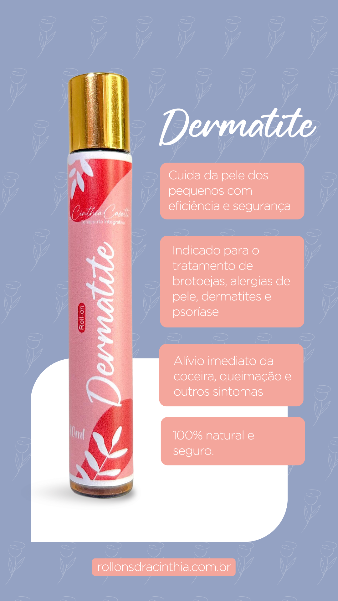 O Rollon Dermatite foi desenvolvido para mães que desejam cuidar da pele delicada de seus filhos com segurança e eficácia. Sua fórmula suave atua de forma natural no alívio de alergias, brotoejas, dermatites e psoríase, trazendo conforto e bem-estar imediato.