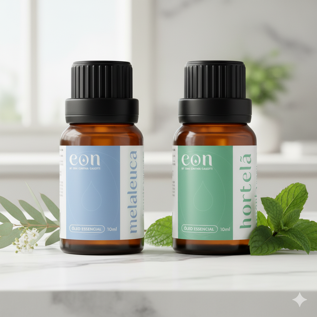 - No Difusor (Foco Limpo): 4 gotas de Hortelã + 4 gotas de Melaleuca. Cria um ambiente estéril e estimulante, perfeito para escritório ou quarto de estudos.