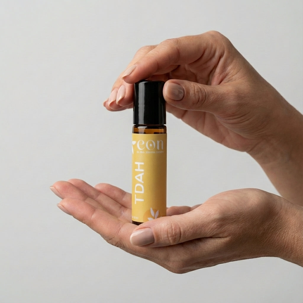 Viver com TDAH é ter um motor de Ferrari com freio de bicicleta. O Roll-on TDAH foi formulado pela Dra. Cinthia especificamente para auxiliar na autorregulação, no "aterramento" da agitação motora e na organização dos pensamentos.